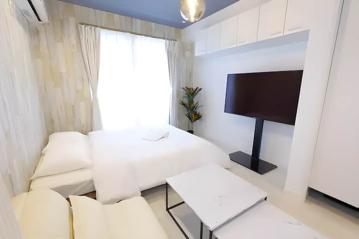 藤沢市にある「AQA ART 江の島」は腰越海水浴場から徒歩8分で、エアコン付きのユニット(無料WiFi利用可)とテラスを提供しています。海水浴を目的として探している方にはピッタリな民泊です。設備の整ったキッチン(冷蔵庫付)、ソファベッド付きシーティングエリア、薄型テレビ、専用バスルーム(ビデ、無料バスアメニティ付)、電子レンジ、コンロ、ポットなど設備が充実している点も魅力的です。